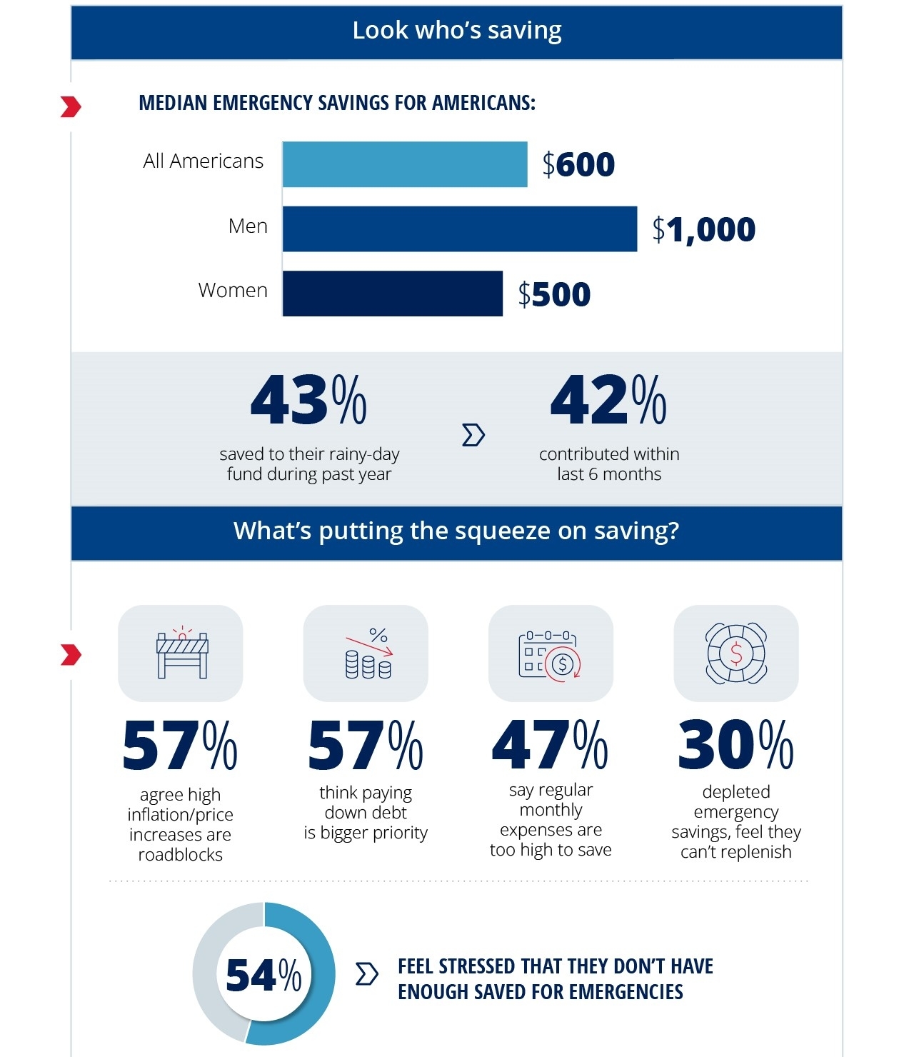 Emergency funds are an important part of your financial plan. This money is designed to cover unexpected events like job loss, major medical bills, car repairs, and home repairs. In the past year, more than one third (35%) of Americans were able to steer clear of unexpected financial situations, but others tapped emergency savings to take care of day-to-day outlays, with 1 in 4 (25%) dipping into emergency savings to afford basic living expenses.