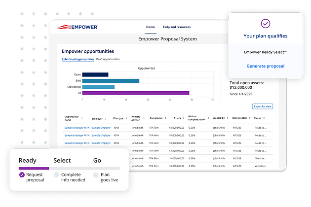 Expand your retirement plan footprint by giving startups and small businesses an industry-leading 401(k) plan with Empower Ready Select™ — available exclusively through the Empower Proposal System.