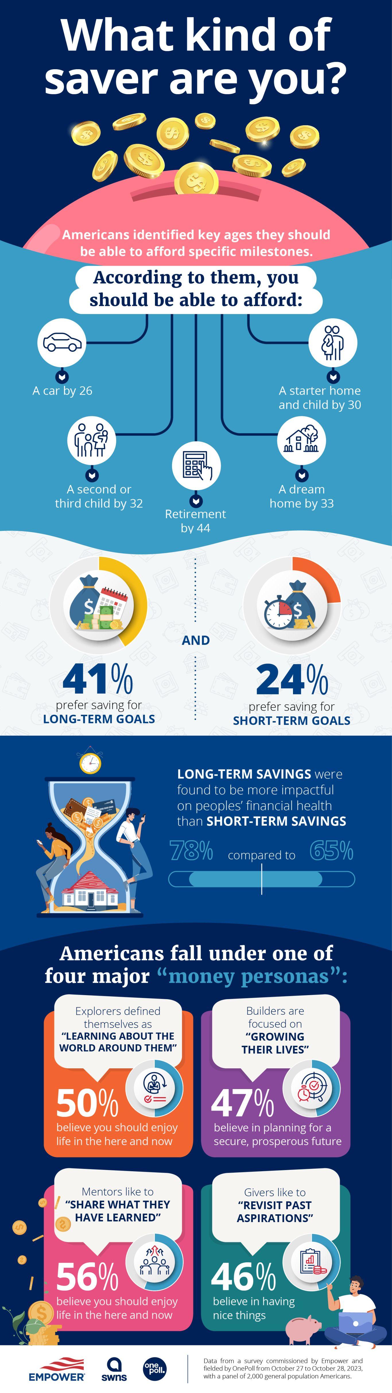 The study also aimed to categorize Americans in four major “money personas”: explorers, builders, mentors and givers.