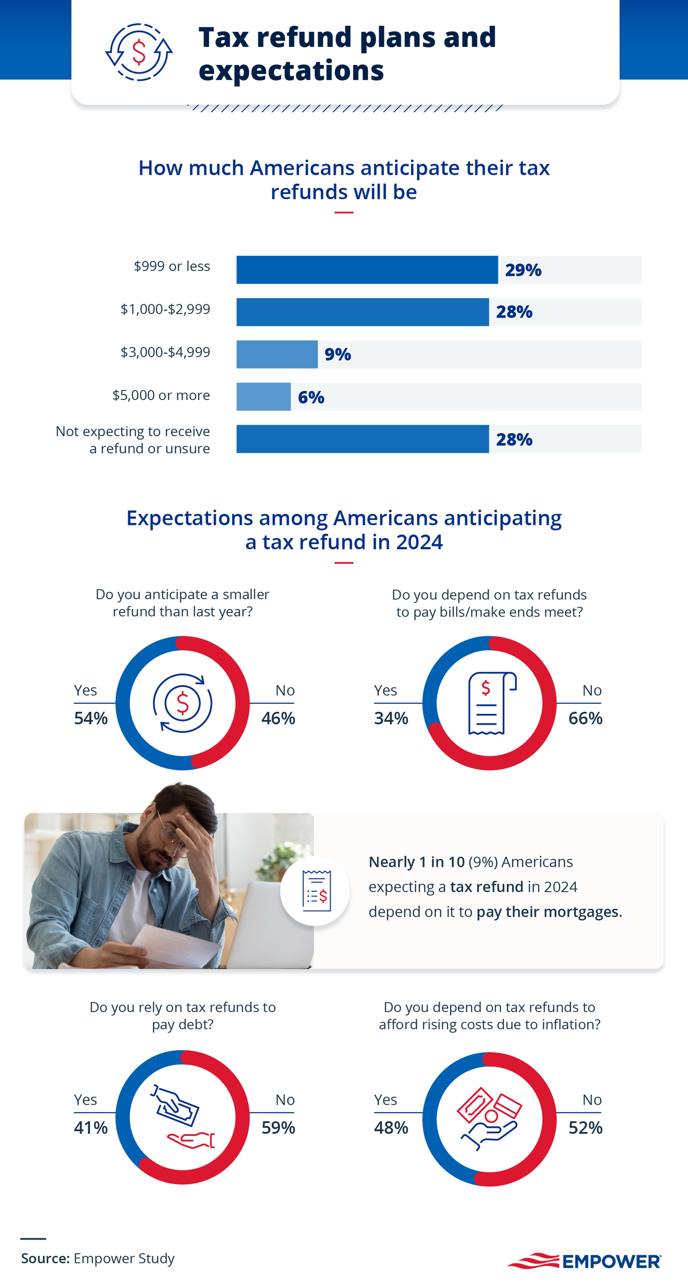 Many Americans rely on their tax refund for essential financial support, and 29% expect their 2024 tax refund to be less than $1,000.